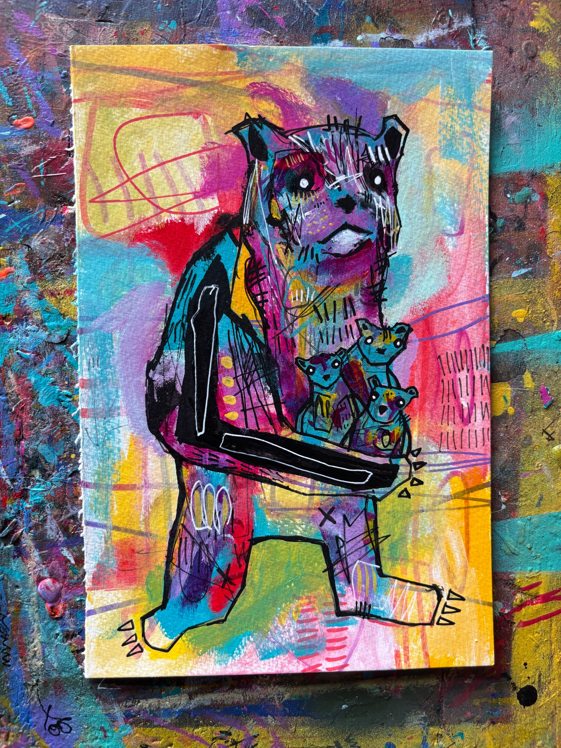 This Original painting on 9x12" watercolour paper offers a unique neo-expressionist look