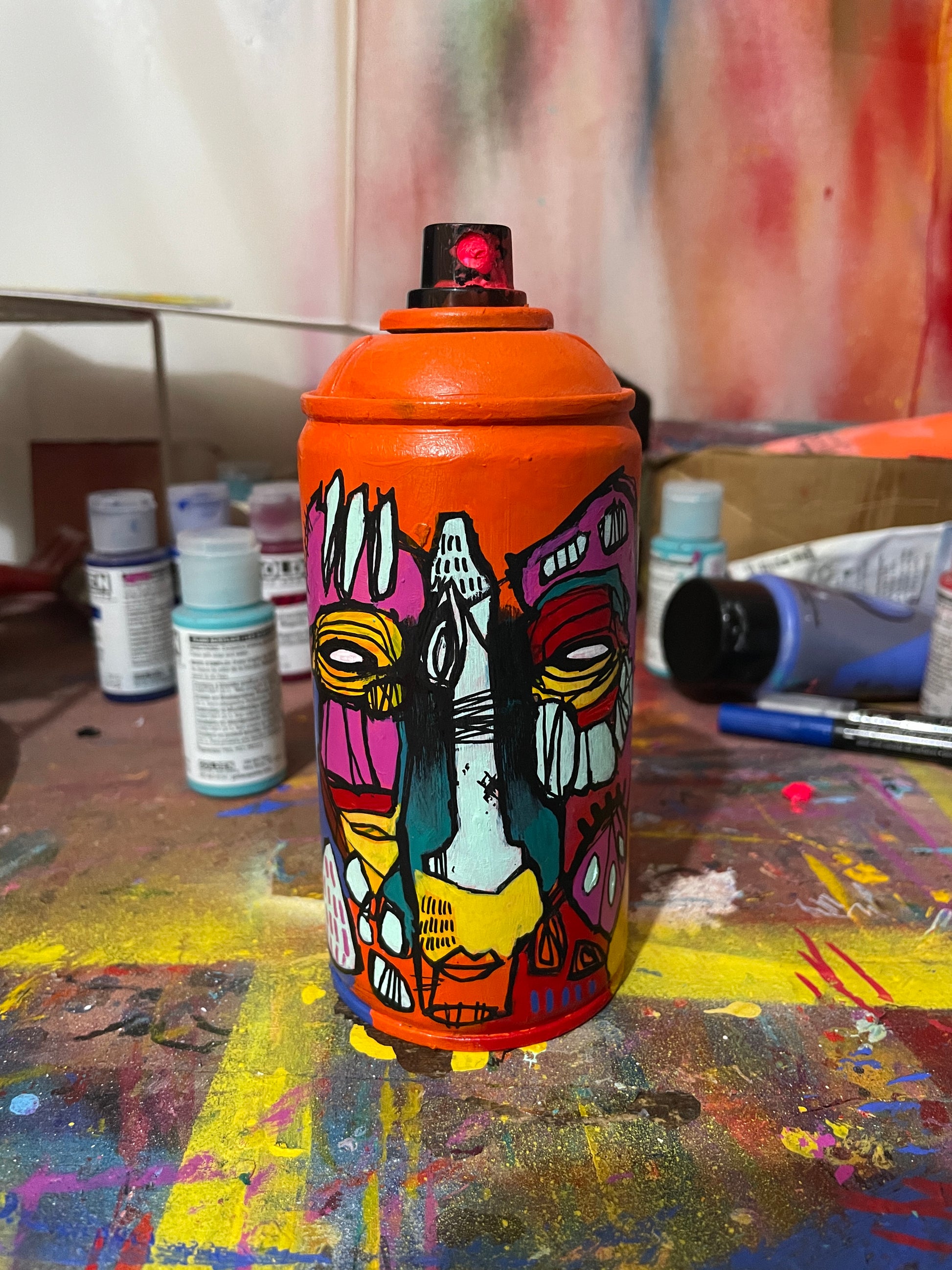 This one-of-a-kind painted spray can is painted to reduce waste materials and is overflowing with personality. Enjoy some street art magic with its vivid acrylic colours and distinct faces on the can.