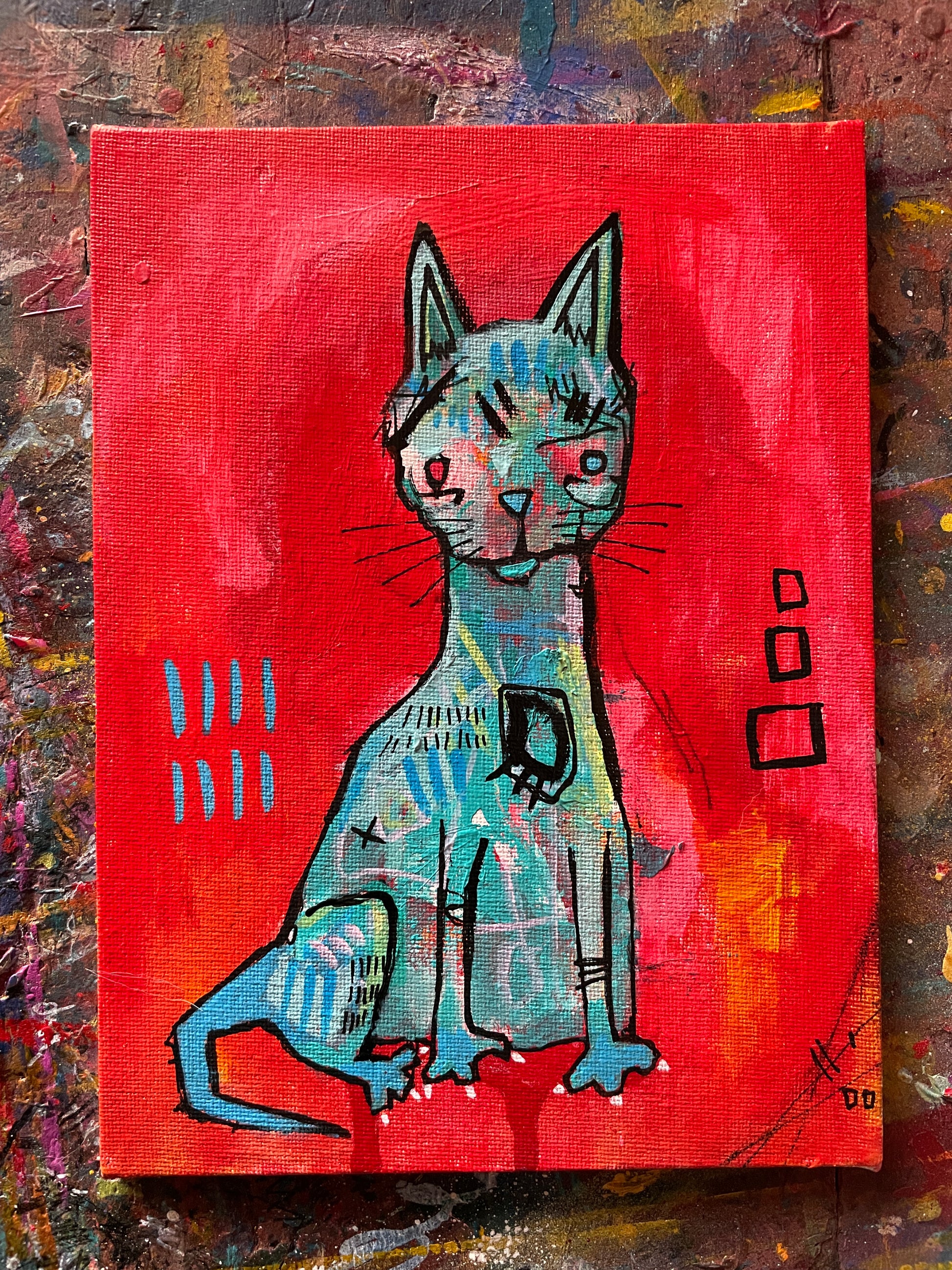 Scraggle Puss Original Painting on 8x6" Canvas Panel