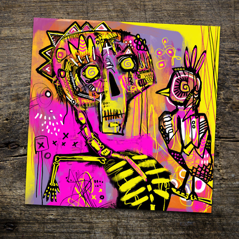 Experience the eternal beauty of art with Skelli and Birdi. Exquisite neo expressionist style archival photographic print by Ian Jones. Adorn your home with these luxurious prints, available in 3 sizes- 12x12, 16x16, and 20x20 inches- that will last a lifetime! Indulge in the exclusive artistry of Skelli and Birdi
