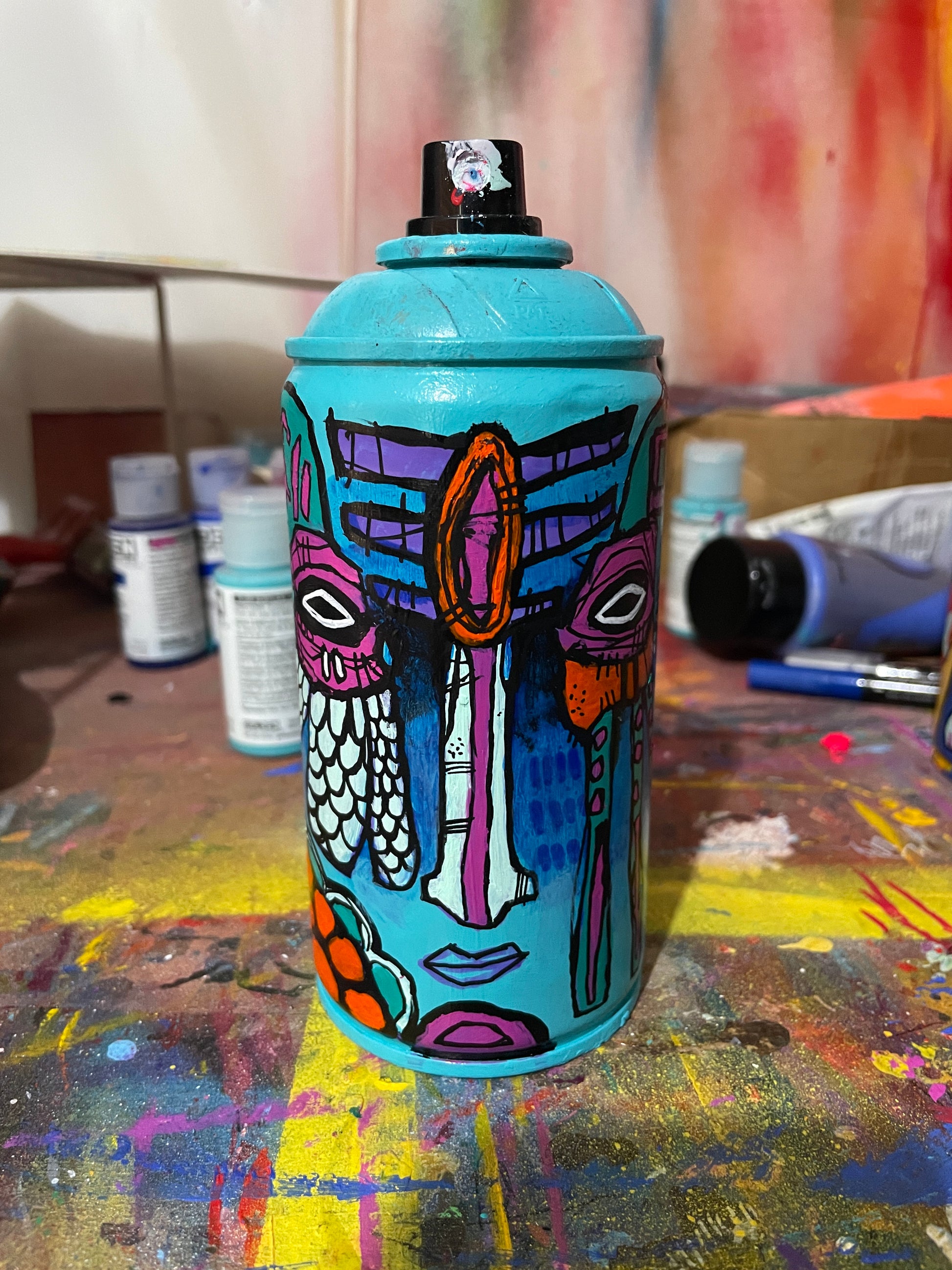 This one-of-a-kind painted spray can is painted to reduce waste materials and is overflowing with personality. Enjoy some street art magic with its vivid acrylic colours and distinct faces on the can.