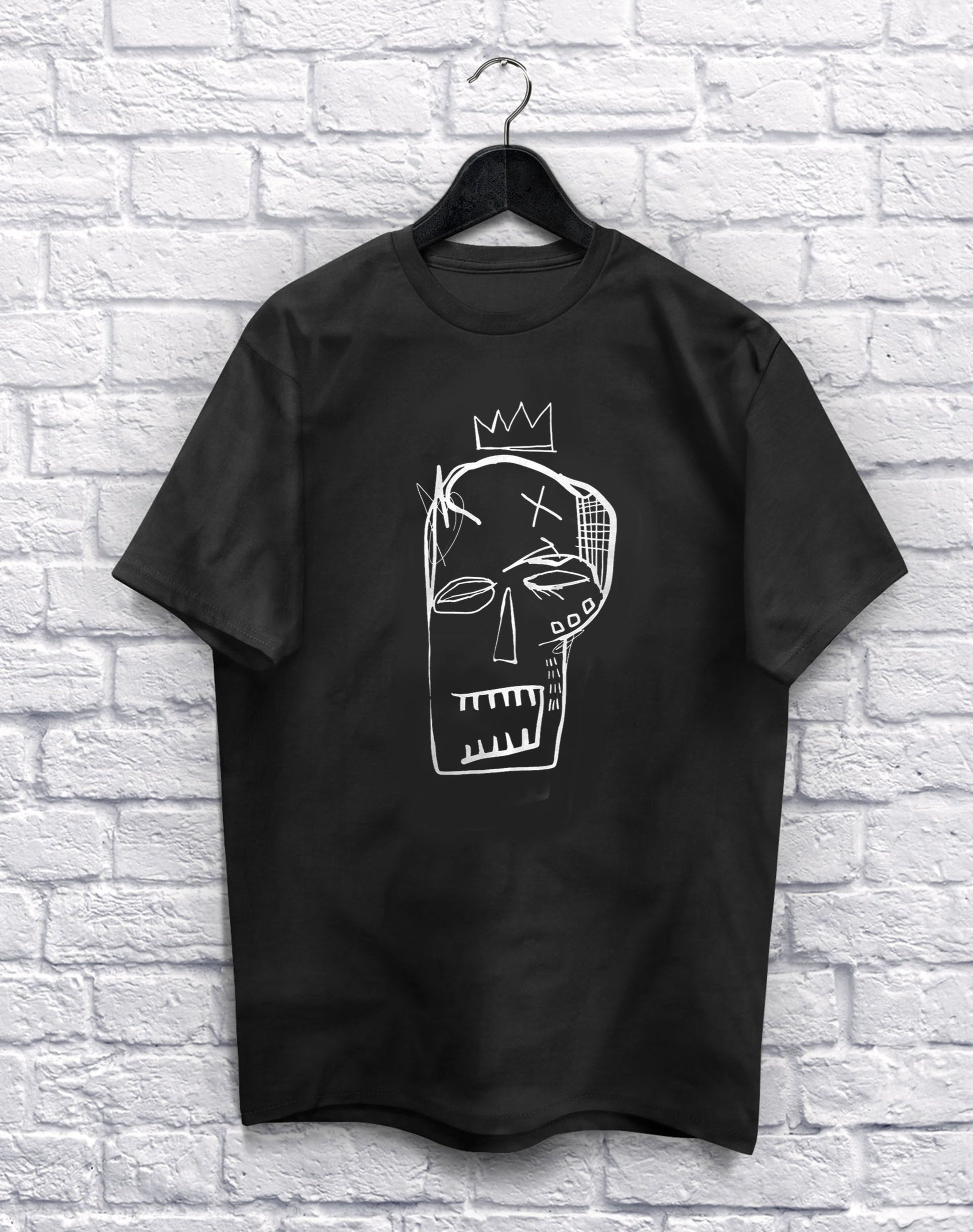 Get ready to welcome Crowned Skull (Ode to Basquiat) T-shirt into your wardrobe! Made with organic cotton and featuring one of Ian's skull pieces, this AWD brand shirt is not only stylish but also eco-friendly. Perfect for those who want to make a statement while caring for the environment. (Sustainably cool!)