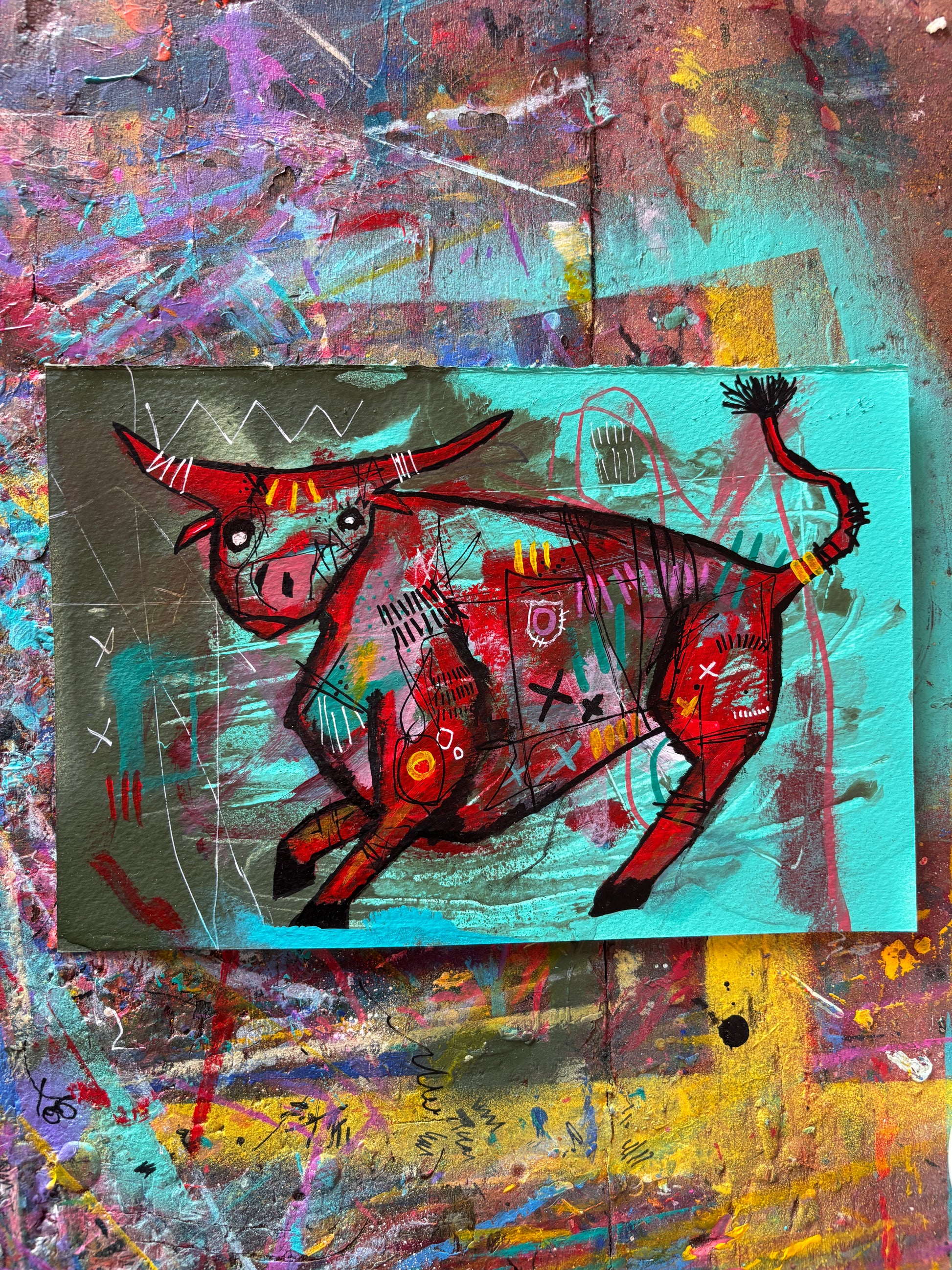 This Original painting on 9x6" watercolour paper offers a unique neo-expressionist look